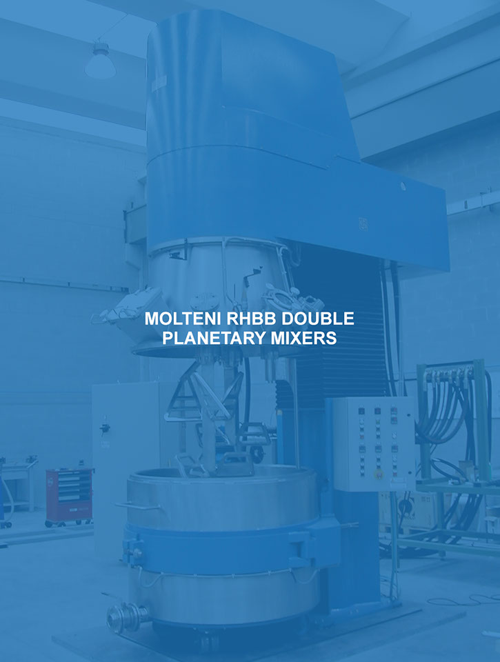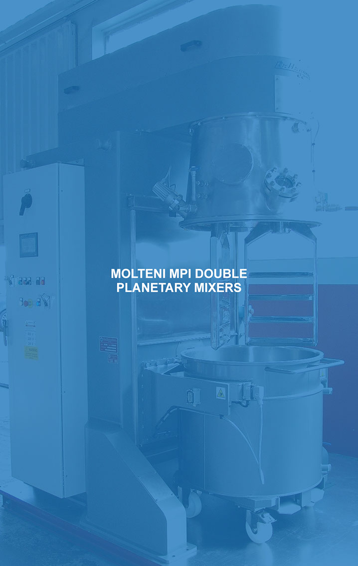 Molteni Double Planetary Mixers, Series RH, RHBB, and MPI, utilize heavy-duty transmissions driven by one, two or three hydraulic or electric motors for unsurpassed mixing torque and flexibility.